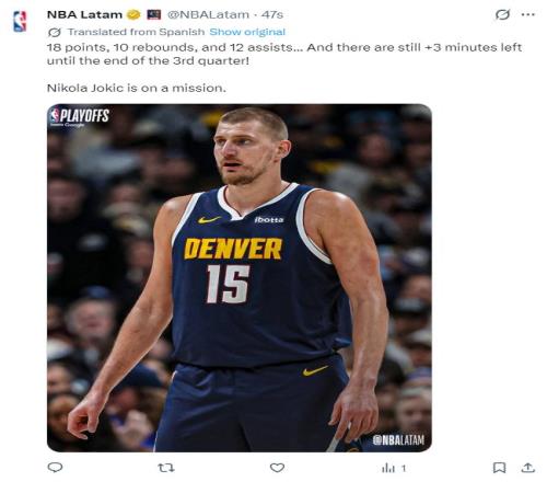 掘金:約基奇27分16助攻12籃板,穆雷24分7助攻,瓊斯20分3籃板3蓋帽2搶斷,卡約18分6籃板,瓦蘭9分,哈達威8分,布勞恩9分。