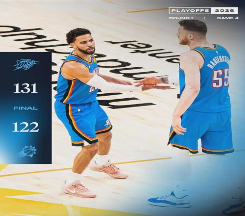 北京時(shí)間4月27日,NBA季后賽首輪G4,雷霆客場(chǎng)131-122擊敗太陽(yáng),總比分4-0橫掃對(duì)手。這輪系列賽可以說毫無(wú)懸念,雷霆4場(chǎng)比賽一共贏了69分,場(chǎng)均凈勝太陽(yáng)17.3分。值得一提的是,雷霆已經(jīng)連續(xù)三年季后賽首輪橫掃對(duì)手。