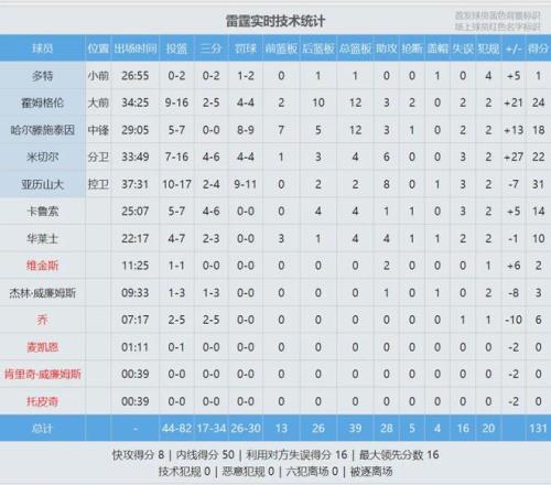 雷霆球員亞歷山大此役17投10中,三分4中2,罰球11中9,得到31分2籃板8助攻1蓋帽。季后賽首輪,亞歷山大一共打了143分鐘,砍下135分!他首輪場(chǎng)均得到33.8分3.8籃板8助攻2.3失誤,投籃命中率55.1%,場(chǎng)均12.2次罰球出手。