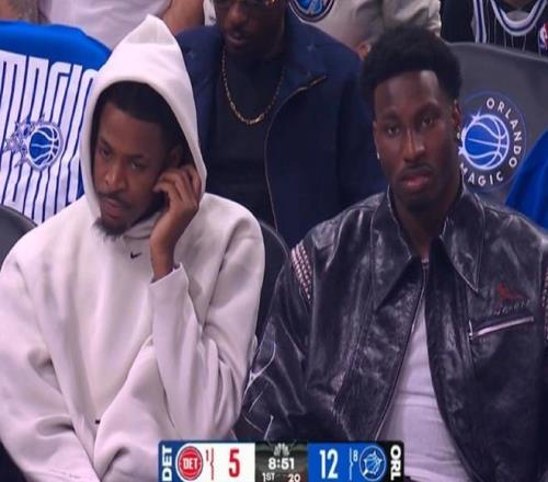 哈里斯和康寧漢姆連續(xù)坐打,班凱羅空切暴扣打?;钊?,暫?;貋碡惗鬈娪?xùn)鄧羅,小瓦反擊,班凱羅造殺傷,魔術(shù)三人組拉開12分分差。中段康寧漢姆帶動杜倫和哈里斯內(nèi)外開花,康寧漢姆續(xù)上三分,后半段活塞依靠賈旺特格林和杜倫帶隊反超,魔術(shù)替補是真沒人得分!第一節(jié)魔術(shù)26-27落后活塞。進入第二節(jié),斯圖爾特和鄧羅繼續(xù)上分,康寧漢姆掛掩護續(xù)上三分球,哈里斯反擊滑翔暴扣!活塞依靠一波13-4的高潮拉開兩位數(shù)分差,危急時刻席爾瓦三分止血,小卡特補籃!昔日灰熊雙煞莫蘭特和小賈倫也現(xiàn)場觀戰(zhàn),支持貝恩!