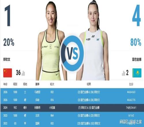 此前,鄭欽文與萊巴金娜交手四次,前者以1勝3負落后。鄭欽文唯一的勝利來自于2024年的年終總決賽小組賽。雙方最近一次交手發(fā)生在今年的多哈站第四輪,鄭欽文在6-4先勝一盤的情況下,接著以2-6 5-7被萊巴金娜逆轉(zhuǎn)。