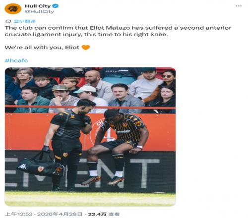 體育播報4月28日宣 據(jù)BBC報道,英冠赫爾城球員埃利奧特·馬塔佐十字韌帶受傷剛復出又遭遇受傷。