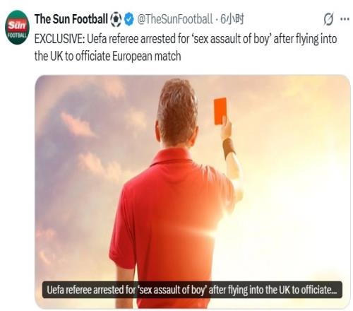 太陽報:一名裁判涉嫌性侵小男孩被捕,已被FIFA和歐足聯(lián)停賽