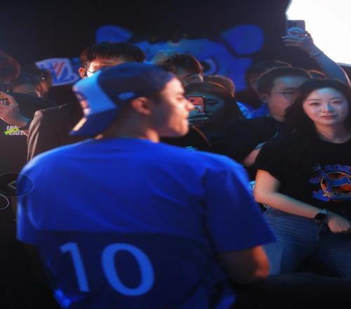 幾百個穿著藍色球衣的球迷,把出口圍得水泄不通。