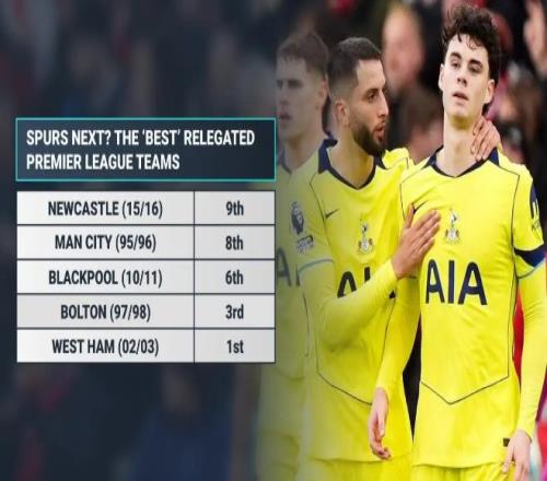 英超歷史上,僅有三支球隊拿到40分及以上卻依舊降級:1996-97賽季桑德蘭、1997-98賽季博爾頓同積40分降級,2002-03賽季西漢姆聯(lián)拿到42分仍遺憾降級。