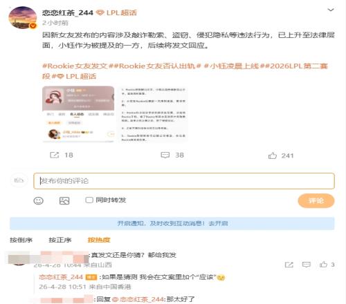 紛爭開始了爆料人談RK女友指控:涉及違法行為小鈺已經(jīng)確定要回應(yīng)了