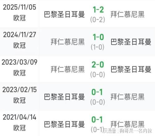 數(shù)據(jù)顯示,自2021年4月起,大巴黎在歐冠賽場和拜仁的5場對決中,無一勝績,其中4場被零封,僅在2025年11月的這場比賽中打入1球。