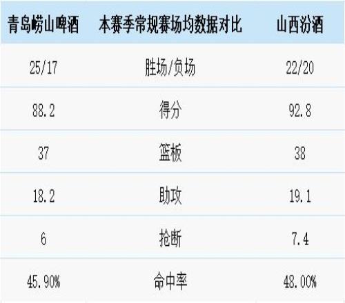 青島嶗山啤酒與山西汾酒歷史上一共交手42次,青島嶗山啤酒17勝25負(fù)。