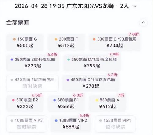 CBA季后賽即將開打,廣東男籃的對手是廣州男籃。和以往的情況不同,廣東男籃今年的主場球票銷售遇冷,不僅沒有出現(xiàn)前幾年一票難求的局面,甚至在比賽開打前還有很多球票沒有出售出去。為此廣東男籃的主場球票不得不打折出售,目前多個檔次的球票已經降低到了六點幾折。很多廣東球迷表示,這在廣東男籃來說還是頭一次,以前哪怕球隊的成績再不好,也沒有出現(xiàn)過這種情況。