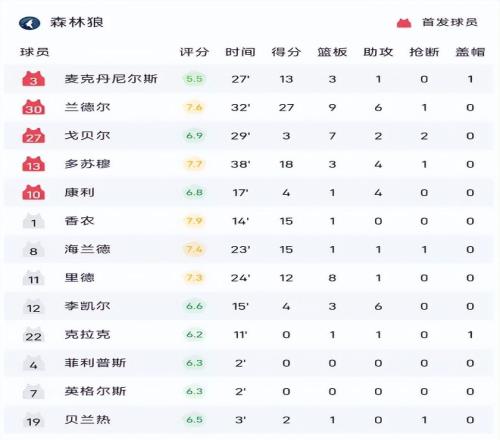 反觀森林狼,盡管蘭德爾拼盡全力,25投11中拿下27分9籃板6助攻,但受限于愛德華茲腳踝扭傷、戈貝爾膝部炎癥缺席,球隊內(nèi)線護框與外線牽制能力大幅削弱,整體攻防體系運轉(zhuǎn)遲滯,縱使全場拼搶積極,仍難敵掘金多維立體攻勢。