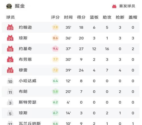 全場比賽,掘金呈現(xiàn)罕見的全員高光狀態(tài):首發(fā)五人全部得分上雙,替補席火力同樣兇猛,角色球員敢投敢突、敢防敢搶,真正實現(xiàn)“人人皆兵、個個扛旗”的團隊作戰(zhàn)形態(tài)。