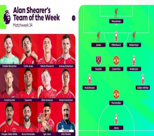 希勒評英超本周最佳陣:森林五將入選,紅軍3人、曼聯(lián)2人在列