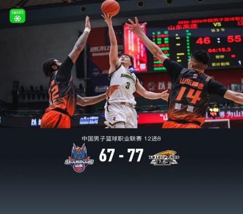 第四節(jié),開(kāi)節(jié)2分多鐘雙方繼續(xù)防守拉鋸,隨后遼寧率先打開(kāi)進(jìn)攻局面,鄢手騏、付豪、姜宇星相繼得分領(lǐng)先至13分,后半節(jié)上來(lái)2分鐘雙方再度持續(xù)進(jìn)攻不中,山東珀賽爾、謝智杰相繼中遠(yuǎn)投追至9分,遼寧鄢手騏三分回應(yīng),比賽還剩最后2分鐘,山東陶漢林內(nèi)線得分,隨后無(wú)力繼續(xù)反撲,最終山東67-77不敵遼寧。