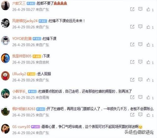 賽后,廣東官方社媒更新戰(zhàn)報引發(fā)大量的球迷圍觀,其中,杜鋒下課的聲音更是達到了新的高度。