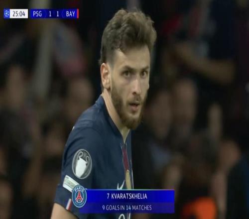 歐冠半決賽首回合,巴黎圣日耳曼主場對陣拜仁慕尼黑,上半場克瓦拉茨赫利亞為巴黎打入一球,至此,克瓦拉茨赫利亞本賽季歐冠已打入9球,距離伊布保持的巴黎球員單賽季歐冠進球紀錄只差1球。
