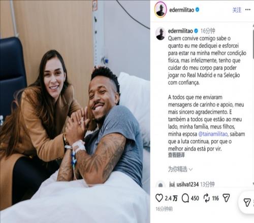體育播報(bào)4月28日宣 皇馬官方宣布,米利唐接受股二頭肌近端肌腱斷裂修復(fù)手術(shù),將無(wú)緣參加今夏的世界杯,球員本人也更新了社交媒體。