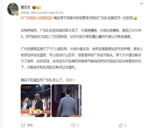 回顧廣東面對有大中鋒的球員都是處于下風的,徐昕打廣東內(nèi)線就是克制,不理解廣東的操作,這個賽季都解決不了這一點。