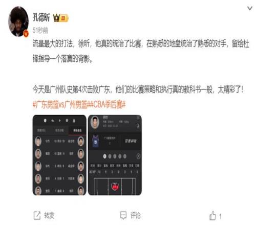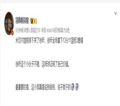 多位媒體人對徐昕送來賀電:徐昕這小伙不錯,這場球證明了自己的價值,他是說到做到,說干(杜鋒)就干(杜鋒)。