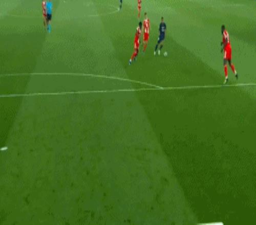 第45分鐘,登貝萊右路傳中,擊中阿方索-戴維斯的手臂,裁判回看VAR后確認(rèn)點(diǎn)球。不過慢鏡頭顯示,皮球先擊中阿方索-戴維斯的身體,再反彈到手臂上,但裁判依然堅(jiān)定,引發(fā)拜仁眾將不滿。