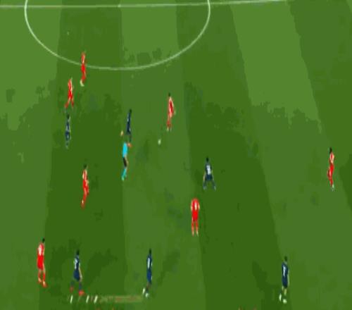 此役拜仁如法炮制,很好地利用了巴黎后衛(wèi)線和中場(chǎng)之間的空間,多次打出有效傳遞;反觀巴黎,既然對(duì)手喜歡高位逼搶,那么通過直塞尋找對(duì)方半場(chǎng)的身后空間便成了最大殺招,克瓦拉茨赫利亞的進(jìn)球過程中,杜埃從右路活動(dòng)到左路,送出的傳球完全將拜仁右后衛(wèi)斯塔尼希奇甩在了身后。