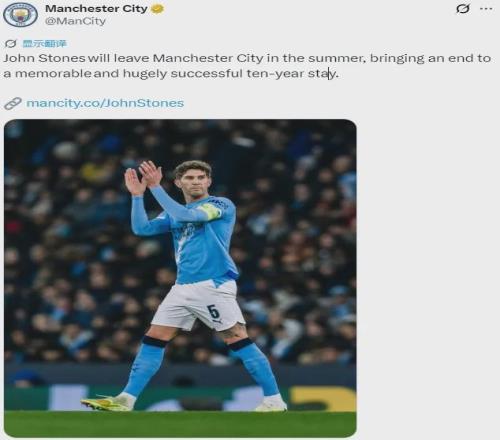 官方:曼城宣布斯通斯將在今夏離隊(duì),結(jié)束他10年的藍(lán)衣生涯。