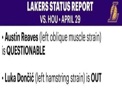 湖人:里夫斯左側(cè)腹斜肌拉傷已經(jīng)升級(jí)為出戰(zhàn)成疑,東契奇左腿筋拉傷仍將缺席比賽。