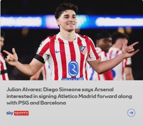 西蒙尼承認(rèn)阿森納有意阿爾瓦雷斯!槍手今夏需出售球星回血!