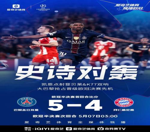 歐冠半決賽首回合迎來巔峰對(duì)決,巴黎圣日耳曼半場(chǎng)以3-2暫時(shí)領(lǐng)先拜仁慕尼黑,最終全場(chǎng)比分定格為5-4,拿下這場(chǎng)激烈對(duì)攻戰(zhàn)的勝利。