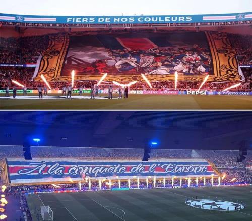 賽前王子公園上壯觀的巨型Tifo借用了拿破侖在阿爾科萊戰(zhàn)役的場景,并改編為擊敗普魯士軍隊,輔以“征服歐洲”的巨大標(biāo)語,而同時奏響高亢激昂的《馬賽曲》,似乎在預(yù)示著即將上演一場扣人心弦進(jìn)攻足球盛宴。比賽甫一開場已展現(xiàn)出賞心悅目的足球風(fēng)格,極具進(jìn)攻欲望的拜仁率先反客為主:第17分鐘迪亞斯禁區(qū)內(nèi)被帕喬鏟倒,凱恩主罰點球命中,以16球超越蘭帕德,成為歐冠淘汰賽進(jìn)球最多的英格蘭球員——職業(yè)生涯首次單賽季參與進(jìn)球達(dá)60個,其中入球54個,甚至超過了17支意甲球隊本賽季的聯(lián)賽全隊進(jìn)球數(shù)。