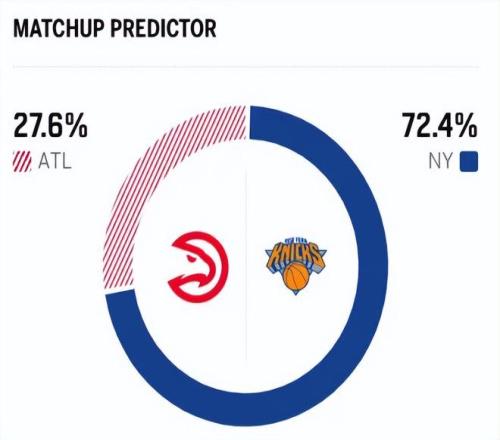 賽前,美媒ESPN對本場比賽進行了勝率預(yù)測,尼克斯勝率高達72.4% ,老鷹勝率則僅有27.6% ,差距又拉大了。