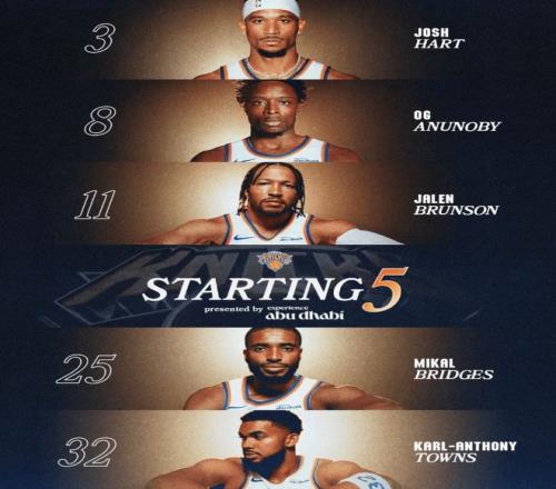 首發(fā)陣容方面,尼克斯這邊,陣容齊整全員均可出戰(zhàn),教練排出的首發(fā)五人組為:布倫森、布里奇斯、哈特、OG-阿奴諾比、唐斯;老鷹隊這邊,蘭代爾因腳踝扭傷確認缺席G5,首發(fā)陣容則為:杰倫-約翰遜、丹尼爾斯、麥科勒姆、亞歷山大-沃克、奧孔古。