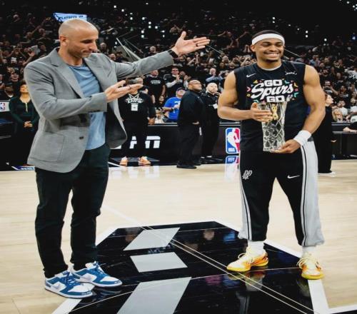今天賽前,馬刺名宿吉諾比利為凱爾登-約翰遜頒發(fā)常規(guī)賽最佳第六人獎(jiǎng)杯,這同樣是一種傳承。掘金和森林狼都是傷兵滿營,掘金的阿隆-戈登和沃特森休戰(zhàn),森林狼愛德華茲和迪溫琴佐傷停,很多球迷看好馬刺一路殺進(jìn)西決!