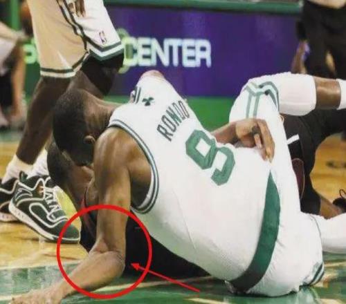 季后賽第二輪G3,比賽進行到第三節(jié)7分2秒,熱隊球權(quán),隆多和韋德爭搶位置時雙雙倒地,為了尋求平衡,隆多伸出左手掌撐地,結(jié)果手肘關(guān)節(jié)瞬間反方向?qū)⒔?0度掰了一下。