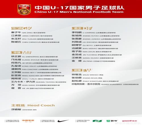 中國U17國家男子足球隊于4月16日開始在廣東肇慶組織集訓