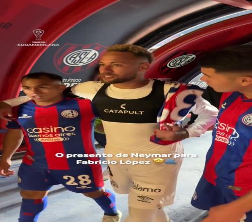 內(nèi)馬爾隨桑托斯客戰(zhàn)圣洛倫索,賽后將球鞋送給圣洛倫索球員