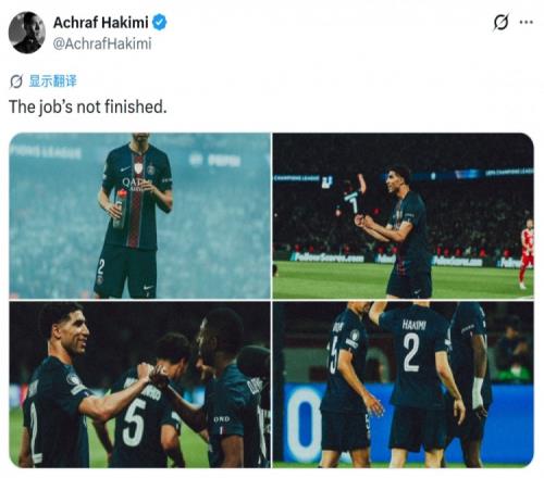賽后阿什拉夫社媒曬出比賽照片,配文:“任務(wù)尚未完成。”