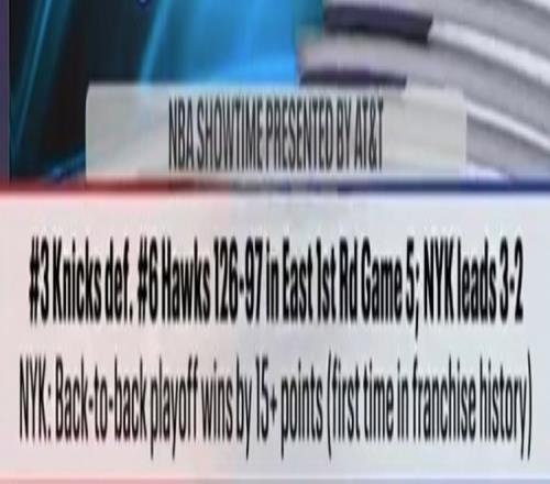 轉(zhuǎn)播方曬出一組數(shù)據(jù):尼克斯在季后賽背靠背凈勝對手15+,這是隊史第一次做到這點!