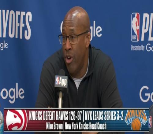 體育播報(bào)4月29日宣 NBA季后賽首輪G5,尼克斯126-97輕取老鷹,大比分3-2領(lǐng)先,邁克·布朗賽后接受了媒體采訪,以下為采訪全文。