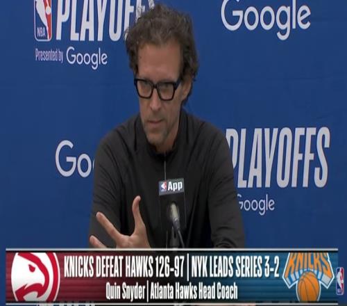 體育播報4月29日宣 NBA季后賽,尼克斯126-97大勝老鷹,總比分3-2領(lǐng)先。斯奈德賽后接受了媒體采訪,以下為采訪全文。