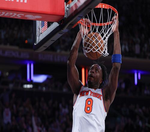 體育播報4月29日宣 尼克斯126-97大勝老鷹,總比分3-2領(lǐng)先。賽后,尼克斯球員阿努諾比接受媒體采訪。