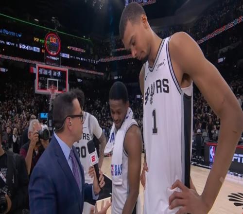 體育播報(bào)4月29日宣 首輪系列賽,馬刺114-95輕取開拓者,大比分4-1紳士橫掃。文班亞馬和福克斯賽后在場(chǎng)邊接受了媒體采訪,以下為采訪全文。