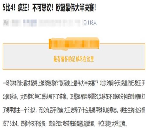 著名足球類大號直接奉上了“最偉大半決賽”的美譽。上賽季半決賽次回合國際米蘭4-3險勝巴塞羅那,好像也有過類似的聲音。