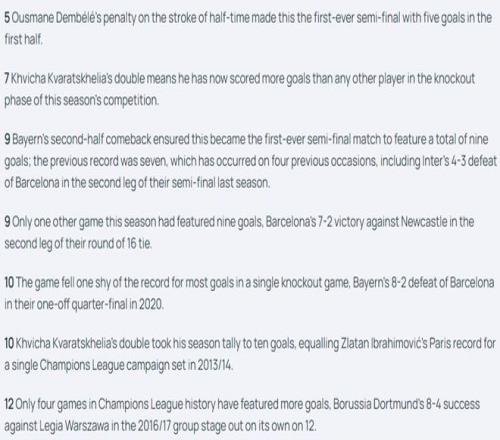 經過核實歐足聯(lián)官網,可以確認這些數(shù)據(jù)僅僅指的是改制后的歐冠(1992-93至今)。如果解除這個限制,早在1959-60賽季,法蘭克福客場6-3擊敗格拉斯哥流浪者,就實現(xiàn)了半決賽單場9球的紀錄,巴黎拜仁只是第二次。