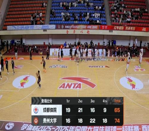 末節(jié)貴州大學(xué)再接再厲,朱怡霏的進(jìn)球幫助球隊(duì)反超比分,不過成都體院也及時(shí)依靠李景延和胡琦玄的進(jìn)球扳平比分。雙方前期一直主打防守,兩隊(duì)前6分鐘里都只拿到6分。末端決勝貴州大學(xué)成功突圍,夏子怡連拿4分幫助球隊(duì)重新取得領(lǐng)先,隨后陳奕亦連續(xù)制造犯規(guī)罰球,貴州大學(xué)送上一波7-0的攻勢拉開比分奠定勝局。最終,貴州大學(xué)74-65力克成都體育學(xué)院拿下比賽。