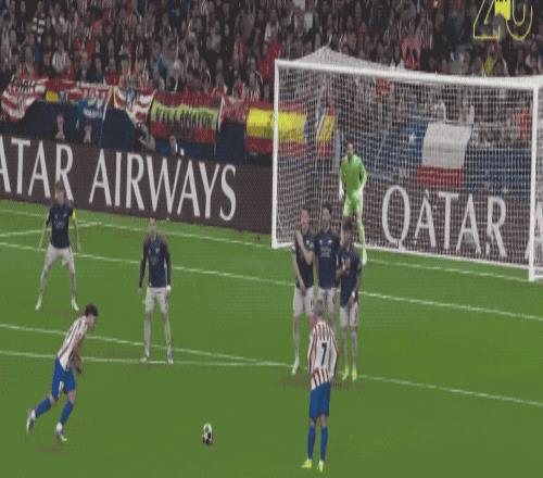 第63分鐘,接到盧克曼的傳球,格列茲曼的射門打在了門柱上。