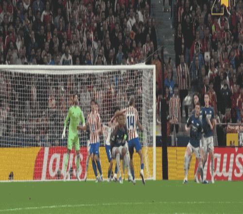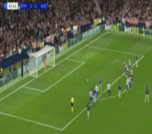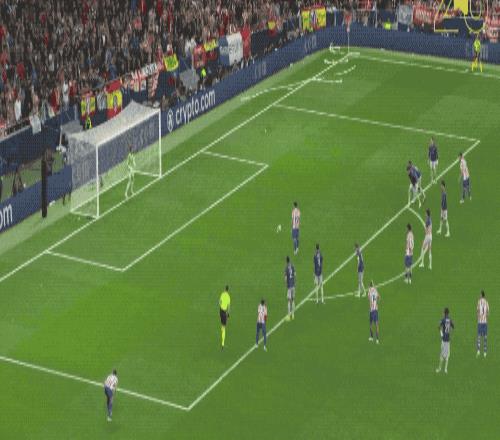 第49分鐘,馬競(jìng)獲得任意球,阿爾瓦雷斯的射門繞過(guò)人墻,皮球擊中邊網(wǎng)。