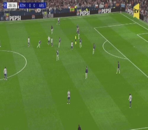 第52分鐘,阿森納的防線經(jīng)受考驗(yàn),拉亞擋出了盧克曼的射門,加布里埃爾封堵了格列茲曼的補(bǔ)射。