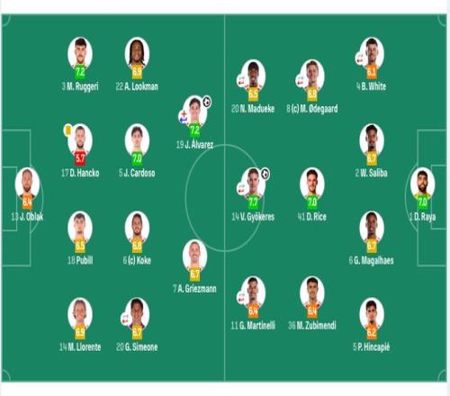 馬競(jìng)首發(fā):13-奧布拉克、14-馬科斯·略倫特、17-漢茨科、18-普比爾、3-魯杰里、5-卡爾多索(88’16-莫利納)、6-科克、7-格列茲曼、20-朱利亞諾·西蒙尼(46’24-勒諾爾芒)、22-盧克曼、19-阿爾瓦雷斯(77’10-巴埃納)。