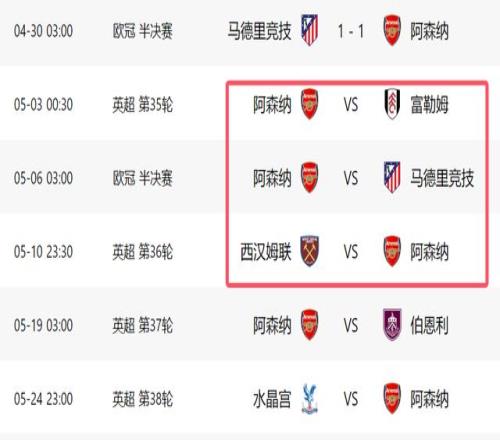 北京時間4月30日,阿森納做客對陣馬競,這場比賽如果能夠全身而退,阿森納就有很大希望進入決賽,最終他們1-1戰(zhàn)平對手。下周中,阿森納回到主場,只要1-0就能淘汰馬競,隊史第二次殺進歐冠決賽。