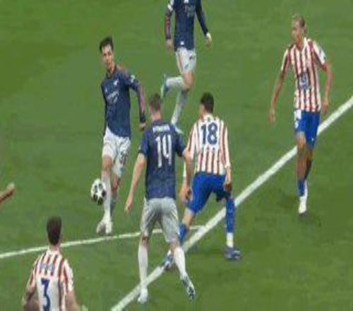 第56分鐘,馬科斯·略倫特禁區(qū)內(nèi)射門打中本·懷特張開的左手,主裁判觀看VAR回放后判罰點球,阿爾瓦雷斯主罰命中,馬競1比1扳平。